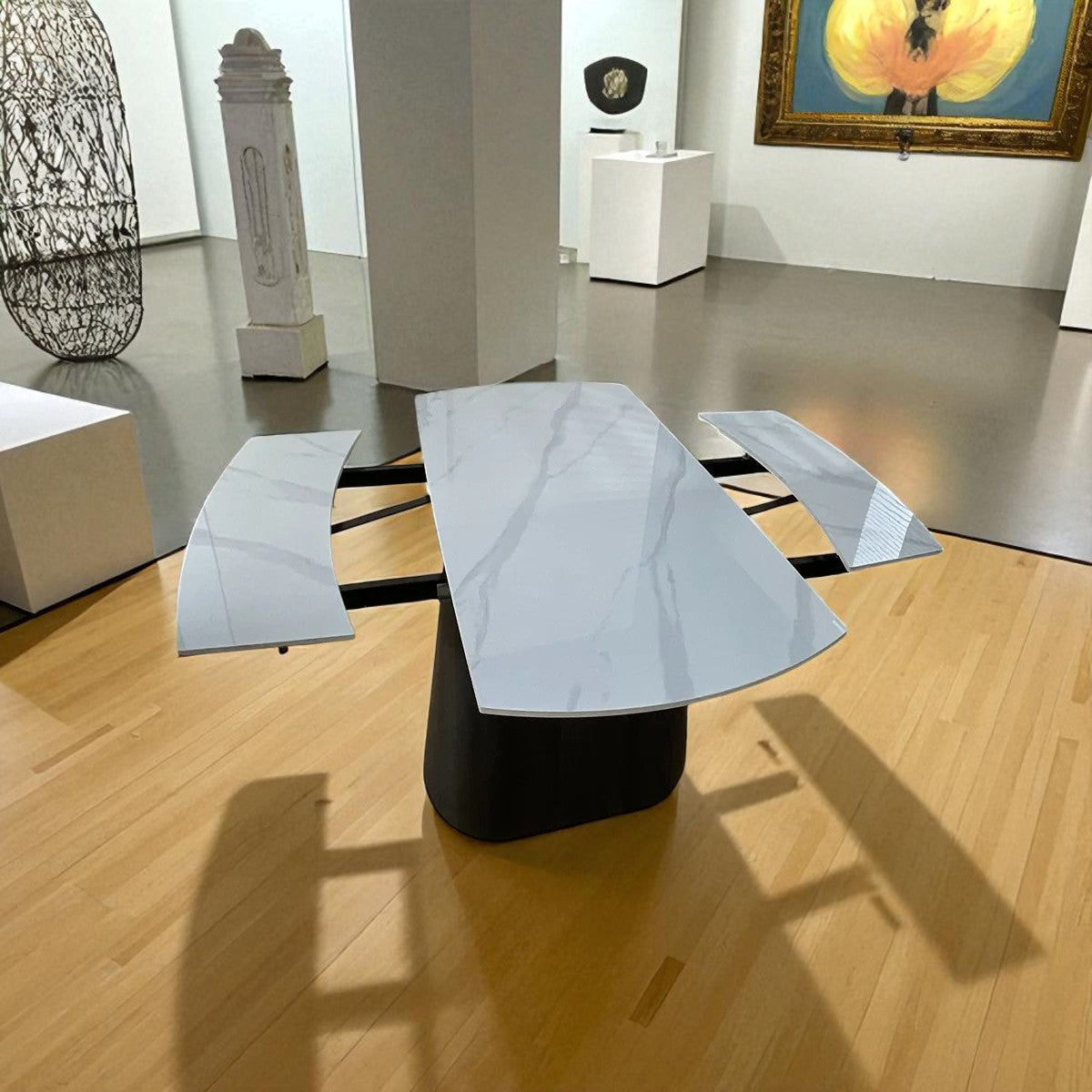 Elevate your dining experience with the BELLUNO TWIST WHITE WITH TORINO MIXED COLOUR CHAIRS DINING SET a perfect blend of modern elegance and practical design. The center piece, the Cleo Twist table, boasts a stunning marble-effect ceramic top with a seamless twisting extension mechanism, providing additional space for hosting guests with ease. Complementing the table are Hendrix chairs, designed with a soft, textured fabric upholstery and natural wood legs for a timeless look and superior comfort. The set’s neutral tones and sophisticated design make it an ideal fit for contemporary interiors, offering both style and functionality. Whether for everyday meals or special gatherings, the Cleo Twist Dining Set adds an air of refined charm to any dining space.