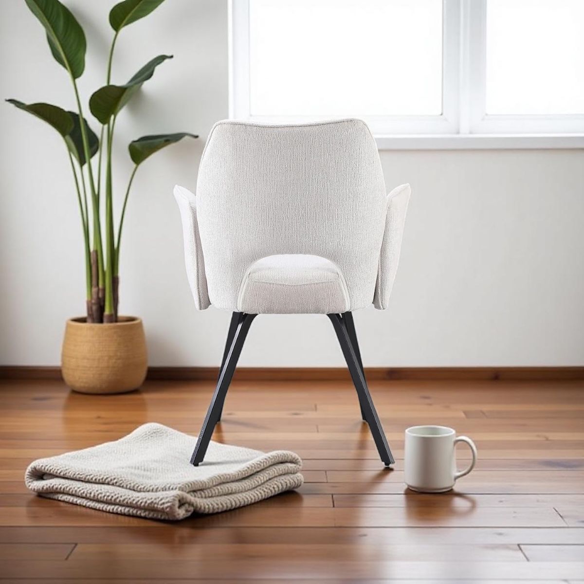 The SAVONA DINING TABLE WITH 6 VENEZIA CREAM CHAIRS DINING SET with a ceramic top brings modern elegance and durability to any dining space. Unlike marble, the ceramic surface offers a sleek, scratch-resistant, and easy-to-maintain finish while maintaining a luxurious aesthetic. Complementing the table are the Tulip 360 Auto Spin chairs in a soft white fabric, designed for ultimate comfort and convenience. With their plush upholstery, ergonomic armrests, and smooth swivel function, these chairs offer both style and functionality. This sophisticated set is perfect for contemporary dining spaces, combining practicality with refined design.